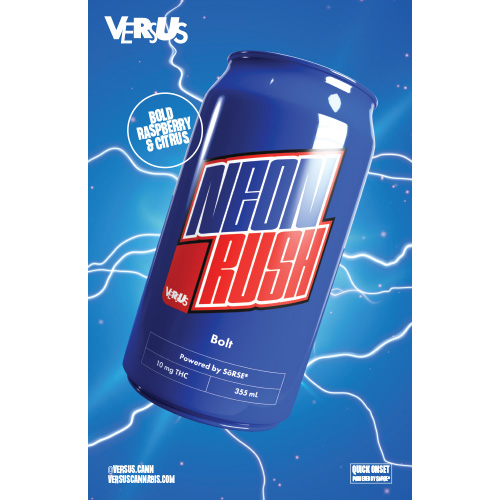 Versus Neon Rush Bolt is an electrifying beverage with big, bold raspberry citrus flavours, containing 10 mg THC.