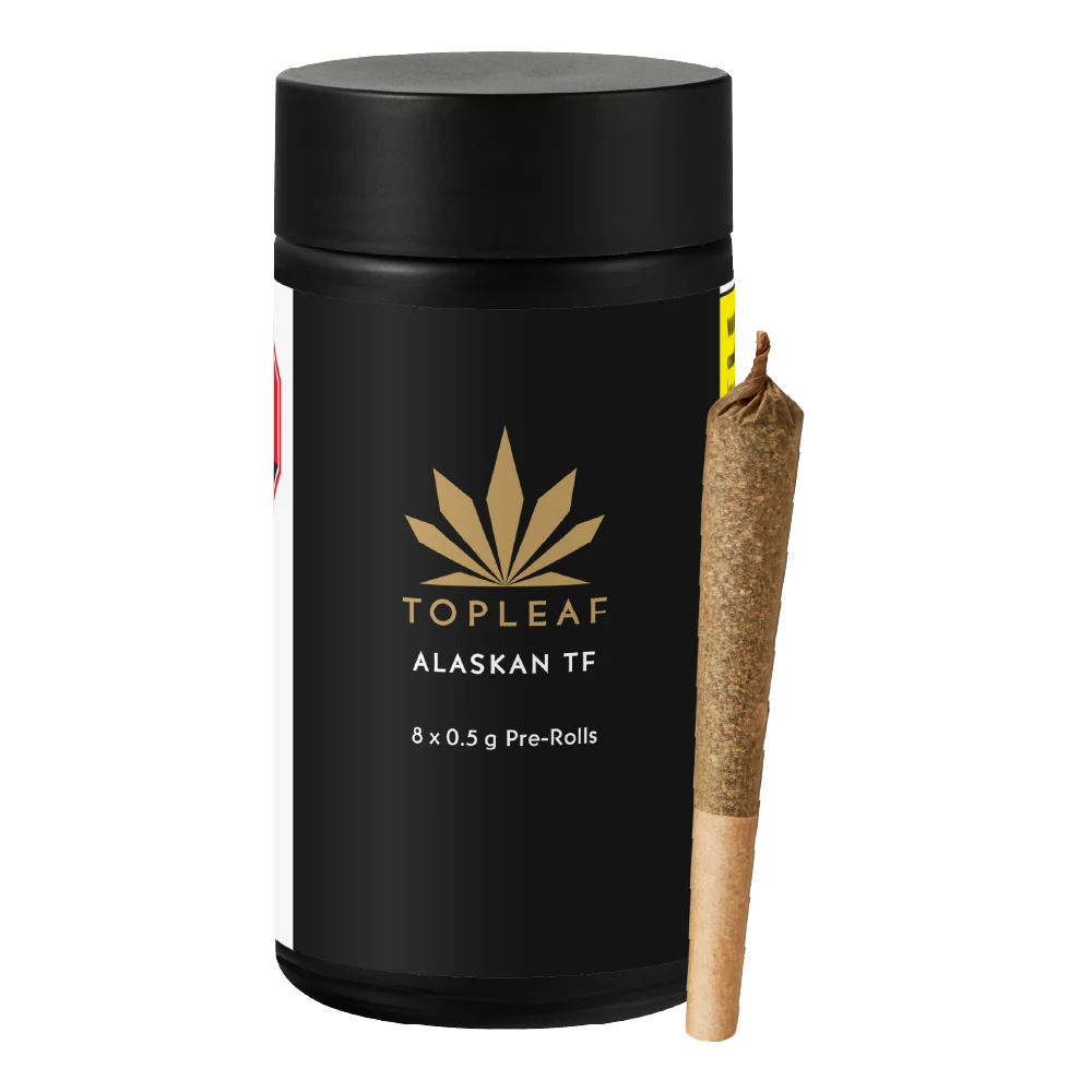 Once shrouded in mystery, Alaskan Thunderf*ck emerges with pungent citrus and earthy flavours, embodying the whispers of its origins amidst the towering peaks of Matanuska. This very-strong THC potency sativa is born from the union of an Afghani indica landrace and a mystery offspring of unknown Northern California and Russian ruderalis strains. Top Leaf prides itself on carefully crafted cannabis—cultivars with rich, full-bodied flavour and complex terpene profiles. We only use milled whole flower, never shake, to craft our whole flower pre-rolls.