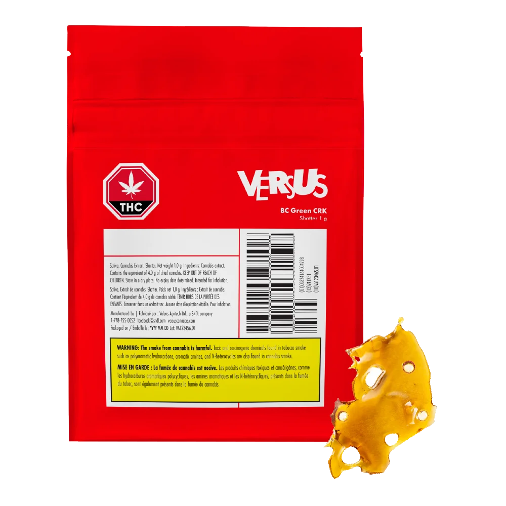 Meet Versus BC Green CRK, a cult favourite sativa with a blend of mango, citrus, and earthy notes.