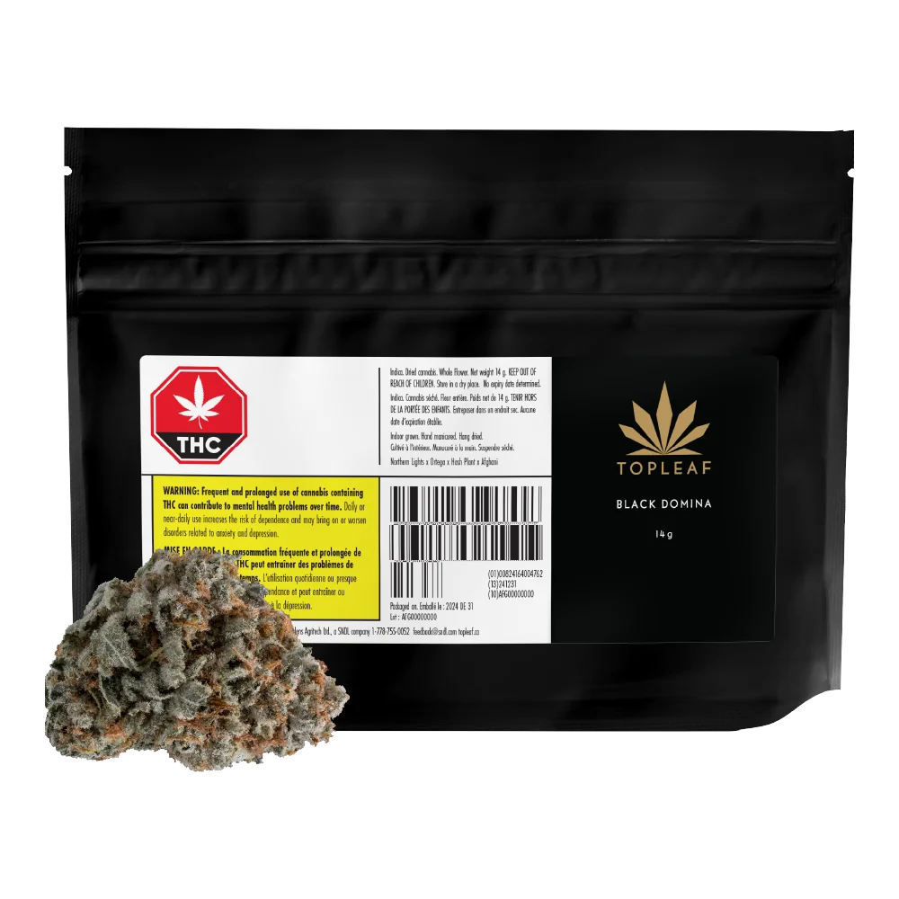 Top Leaf Black Domina is a resinous indica coaxing a symphony of indulgent flavours, ranging from earthy tones to hints of spice, smoke and aged oak.