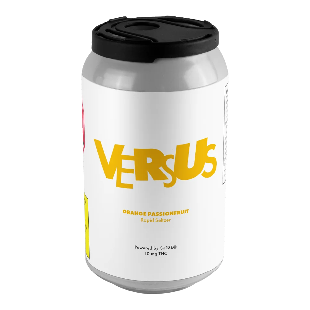 Versus Orange Passionfruit Rapid Seltzer offers a tropical blend of zesty orange and passionfruit with 10 mg THC and low sugar for a quick, sparkling burst of sativa bliss.