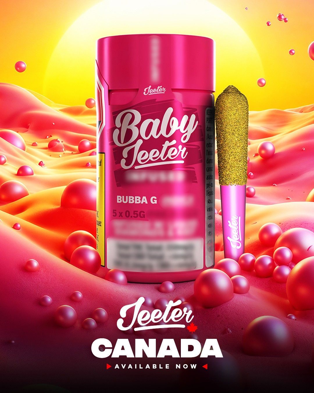 Get ready, Canada! Jeeter is making its grand debut in the Great White North. Baby Jeeters promise an experience that's anything but small. Every meticulously crafted pre-roll is infused with diamonds, fully coated with a layer of kief and charged with a burst of unparalleled flavour. Embrace the best, Canada. Jeeter has landed. Bubba G stands out among indicas due to its mysterious origins. Rumours point to a unique cross involving Indiana Bubble G. Each puff of our Bubba G pre-rolls is a sweet berry experience, giving way to a light spiciness on the exhale. Heavy berry overtones are immediately apparent in the aroma, lingering with earthy Kush and flowery herb notes.
