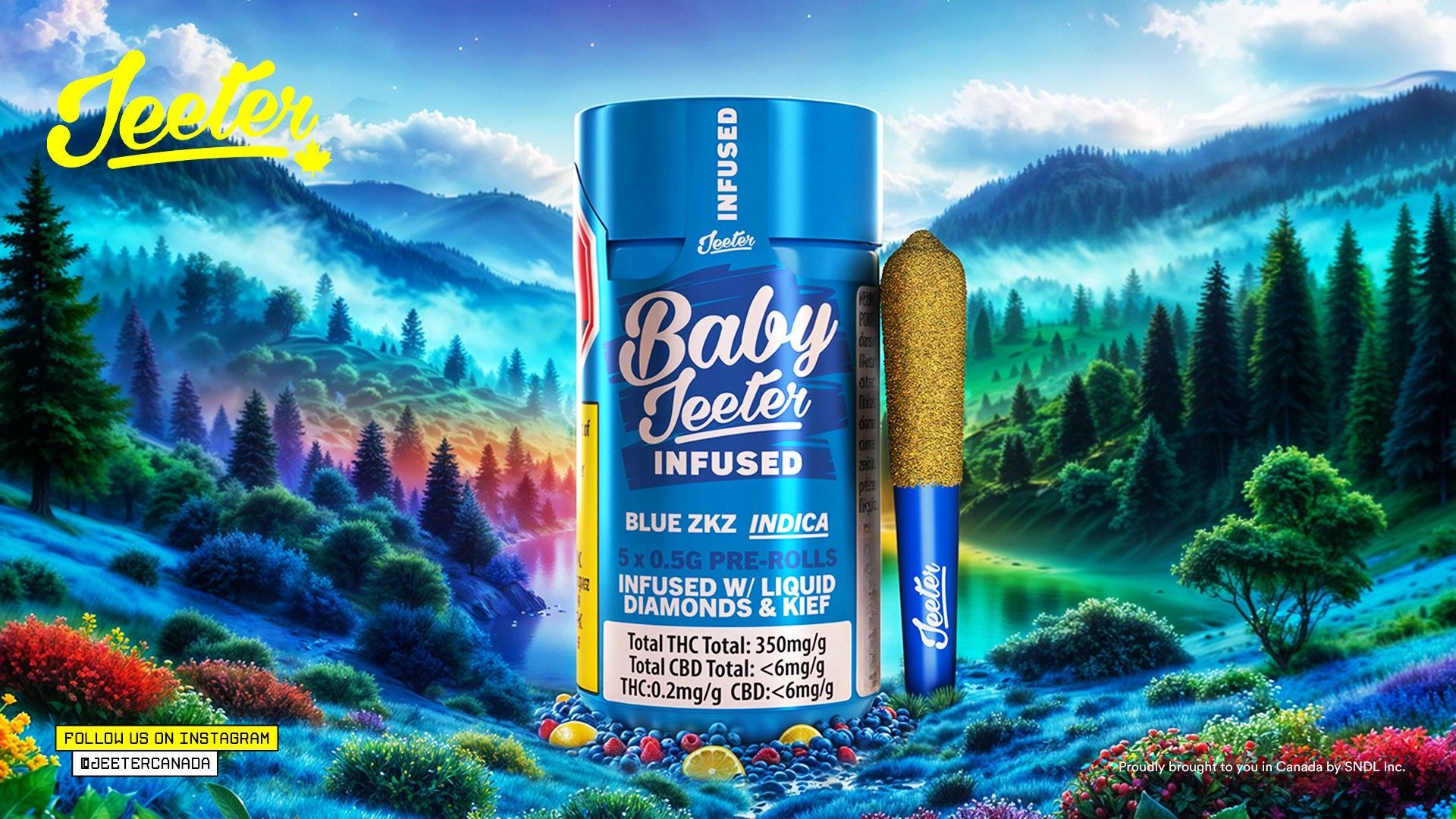 Get ready, Canada! Jeeter is making its grand debut in the Great White North. Baby Jeeters promise an experience that's anything but small. Every meticulously crafted pre-roll is infused with diamonds, fully coated with a layer of kief and charged with a burst of unparalleled flavour. Embrace the best, Canada. Jeeter has landed. Blue Diamond meets Zktlz to make the unique indica Blue Zktlz. Our aptly named Blue ZKZ pre-rolls offer a complex bouquet of tart citrus, sweet earth and wildflower notes.